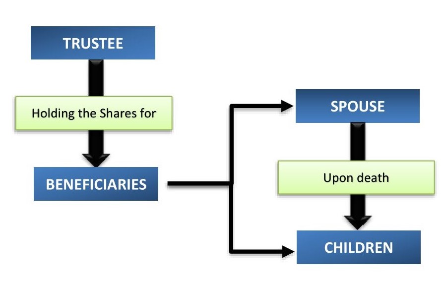 By creating a trust instead of making outright gifts under the Will, your parents and spouse will not receive legal ownership of the assets. A trust however, allows your parents and spouse to benefit during their lifetime without the necessity of giving them legal ownership or full control. As the trustee rather than your parents or spouse is the legal owner, they will not be able to sell or transfer the shares in the business and upon their demise it will not form part of their estate. As such, they will not be able to pass on the assets to beneficiaries under of their estate, which in the case of the spouse may include the new spouse, children from another marriage or the parents.